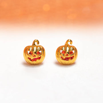 Celebrate the Halloween season with these adorable Spooky Pumpkin Studs! Featuring a glowing orange cubic zirconia stone nestled in detailed metalwork, they bring just the right mix of spooky and sweet. Available in 18k gold, rose gold, or rhodium plating over brass, these charming earrings add a playful touch of Halloween magic to any outfit.