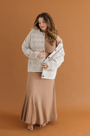 Cozy up in the Lola Plaid Sweater Jacket, your new fall favorite! This soft, button-down piece blends the charm of a sweater with the warmth of a jacket, featuring a playful plaid pattern that adds instant style. Perfect for crisp autumn days, it’s easy to layer and even easier to love.