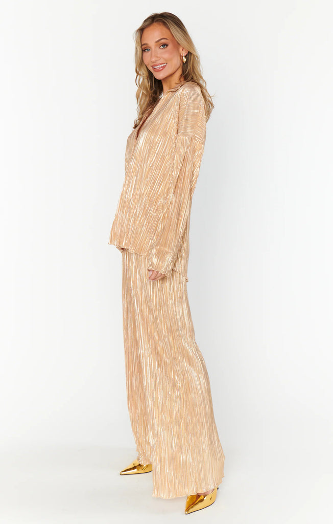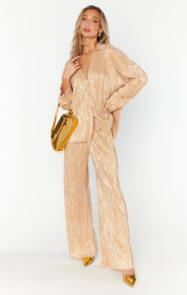 Match our luxurious Christmas Dinner Sat Top with these high quality show-stopping pants! Who doesn't love a good set?! Look like a million bucks at your next event with these shiny pants! We love them paired with our matching top or paired back to a holiday sweater! Carry these pants into the new year for your next celebration! Cheers!