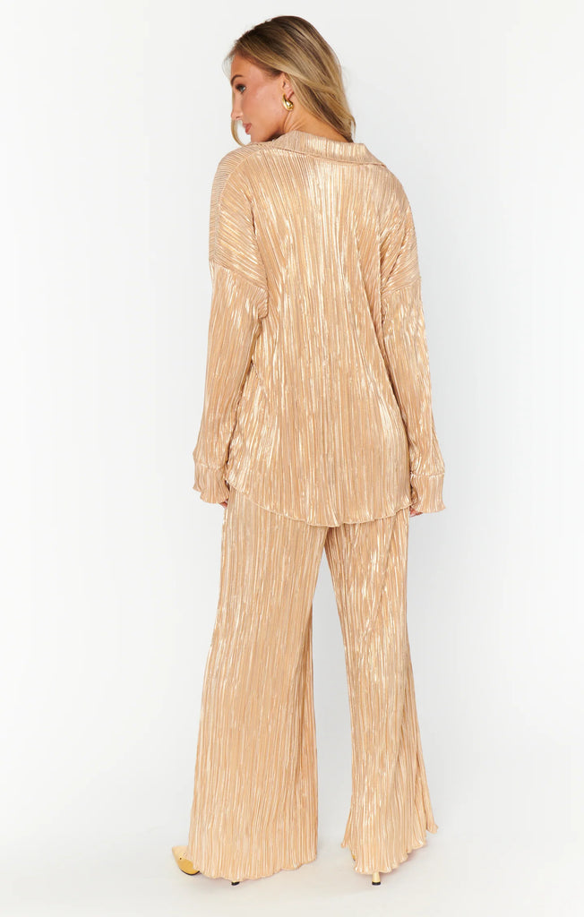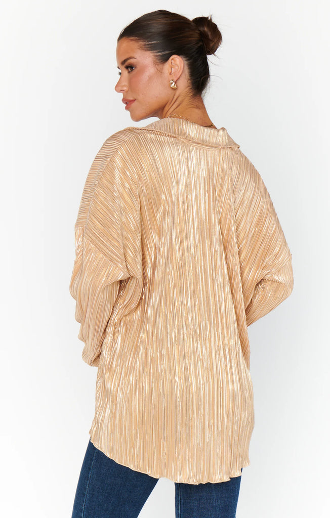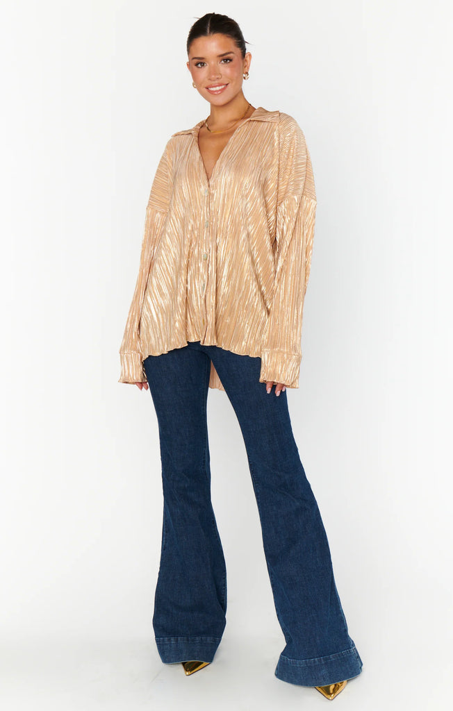 This Luxe Button Down is the best top this season for all your Holiday parties! The perfect hosting top to host your guests who will be asking you "Where did you get that top from"? Satin and crinkle fabric with a gorgeous sheen. The absolute "must have" this season!