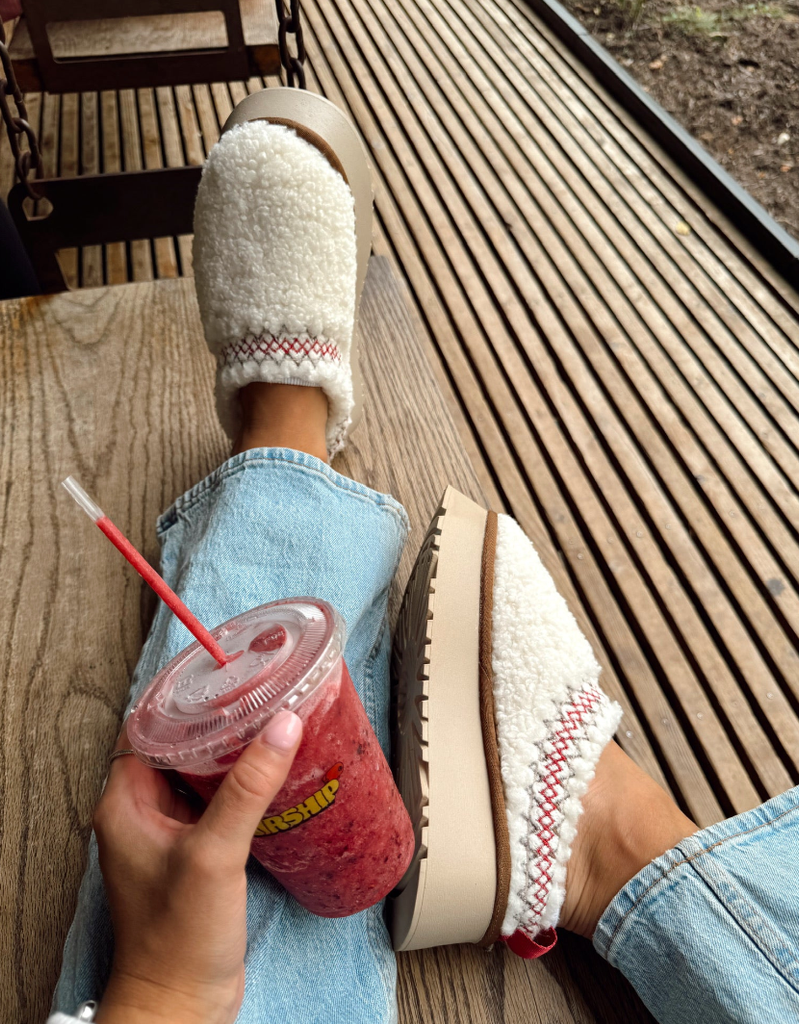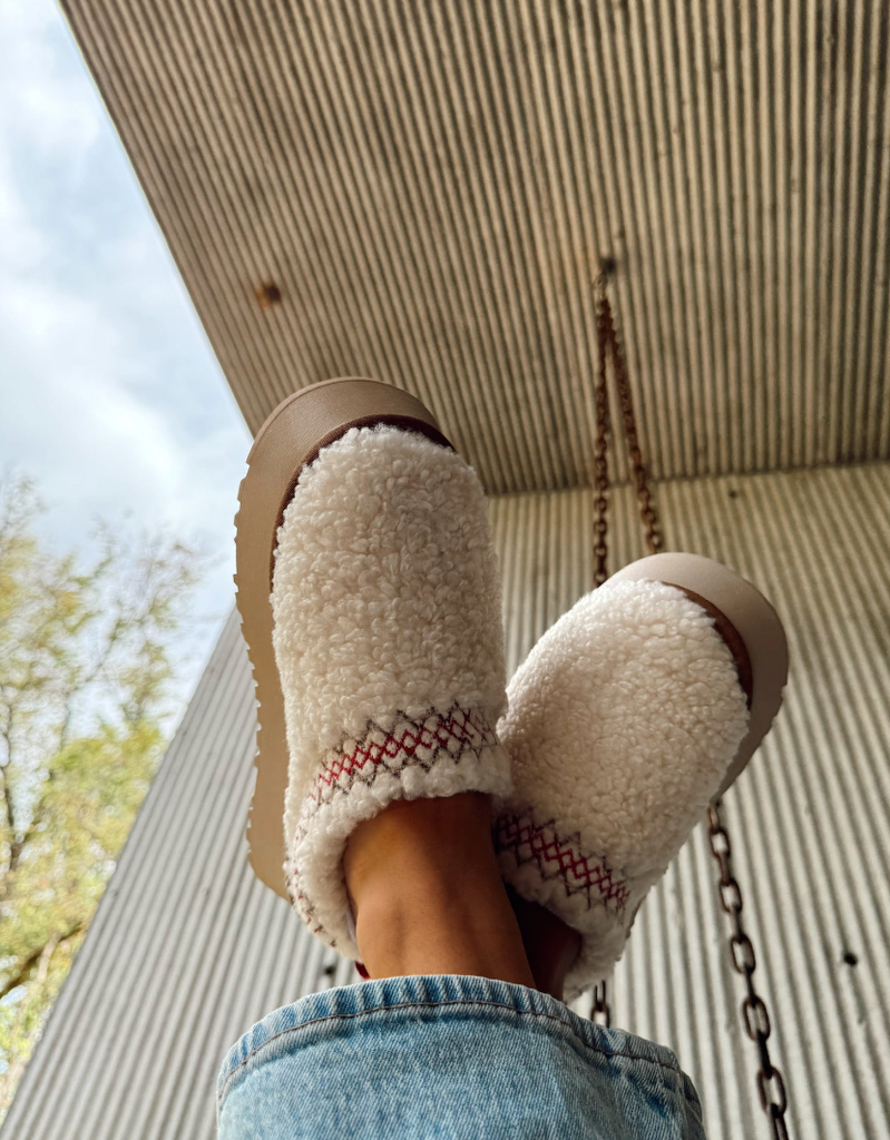 Treat your feet to the ultimate comfort with our Holiday Spice Sherpa Platform Slippers. Plush and stylish, these slippers are perfect for lounging around the house or running errands. With a trendy platform design, they'll elevate any outfit. Get ready to relax and look good doing it!