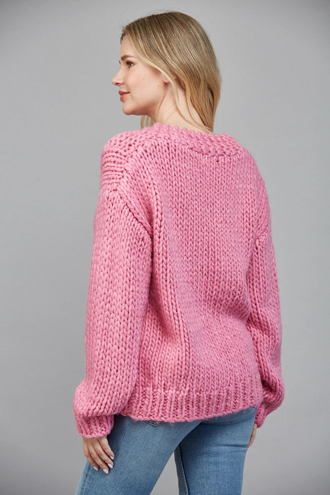 Channel your inner Glinda in this oversized chunky knit sweater that's as cozy as it is charming. Hand-knitted with incredibly soft yarn, it's the perfect companion for casual outings—whether you're catching the latest blockbuster or just vibing with friends. The relaxed fit drapes beautifully for effortless style that feels like a warm hug. Pair it with your favorite jeans and you're ready to sparkle through your day.