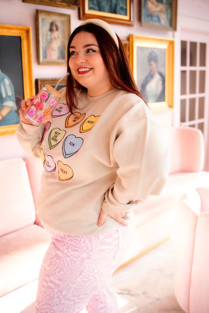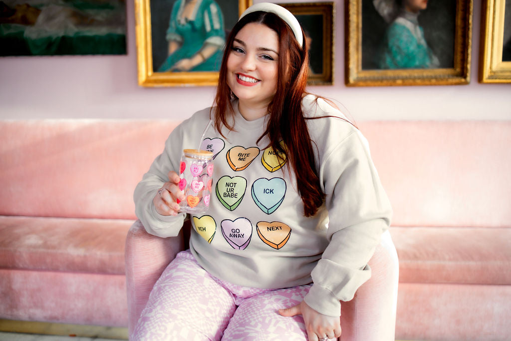 Where are my single ladies?! This sweatshirt is for my girls that are living their best single lives!! The Single AF Sweatshirt is a super soft fleece with colorful candy hearts and hella funny sayings! Pair this with your fave sweatpants and be super comfy! We are not letting the "ICK" ruin our valentines!