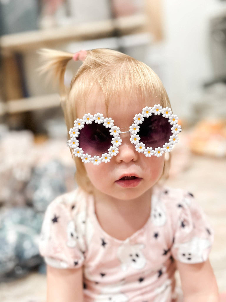 Adorable sunnies for your hunnie with an around flower shape in white daisies. Fits a range of baby to toddler size.
