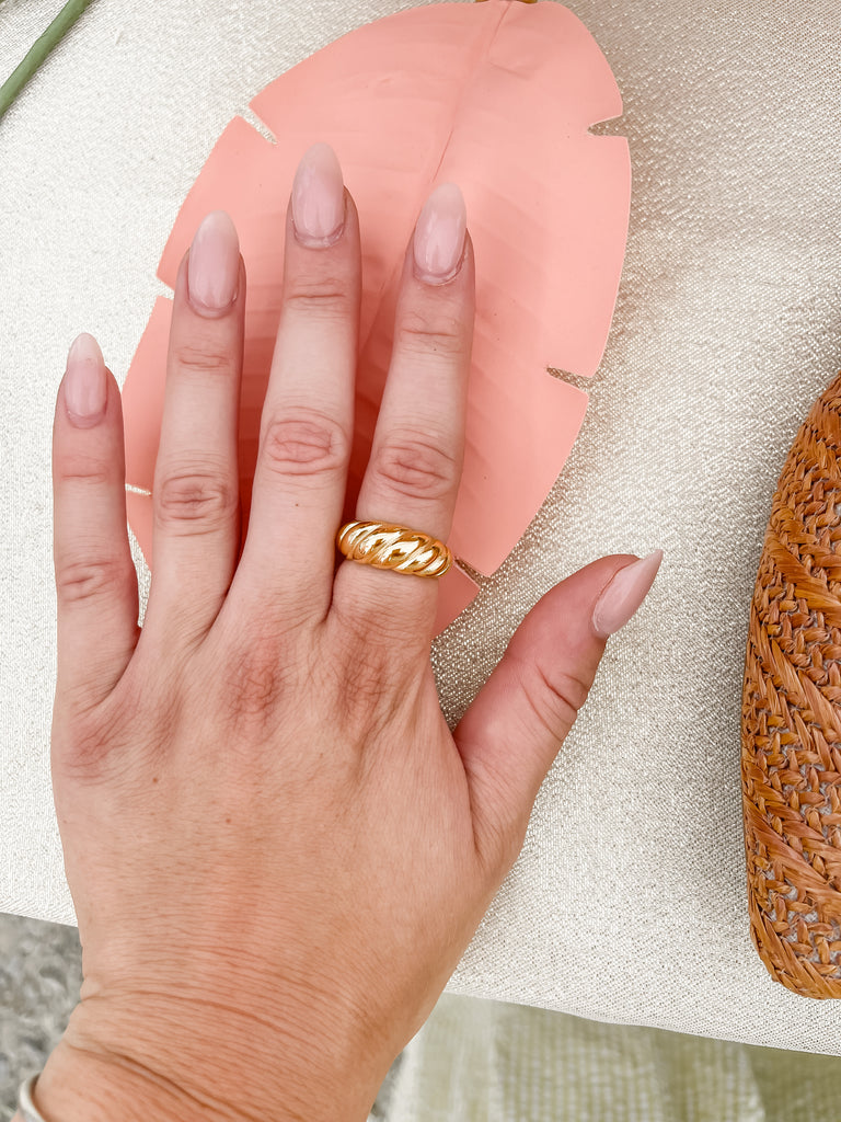 This 18k gold plated sterling ring looks exactly like a croissant! Super delicate and feminine with a gold flare. Pair with your other eveyday rings and watch your collection have a glow up!