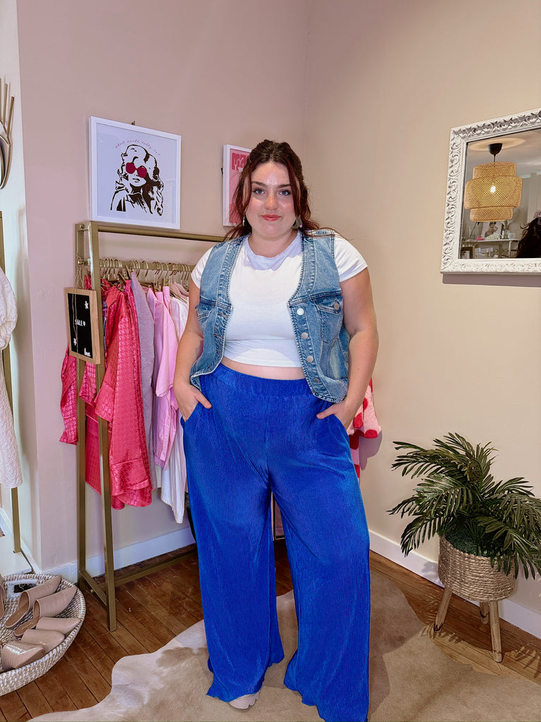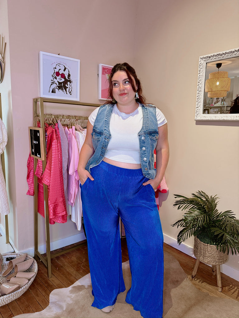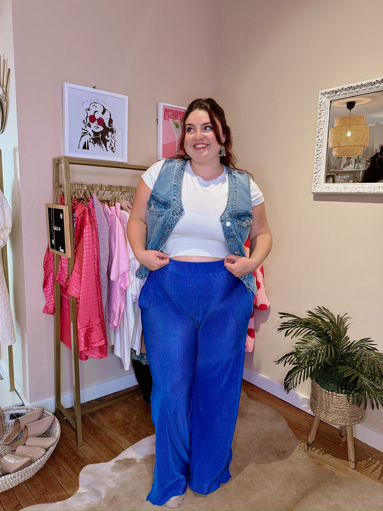 Get ready to make a statement with our Ocean Waves Plisse Pants! These plus size pants feature a comfortable elastic waist, pockets for added convenience, and a wide leg design for a flowy, flattering fit. Perfect for any occasion, these pants will have you feeling stylish and confident.