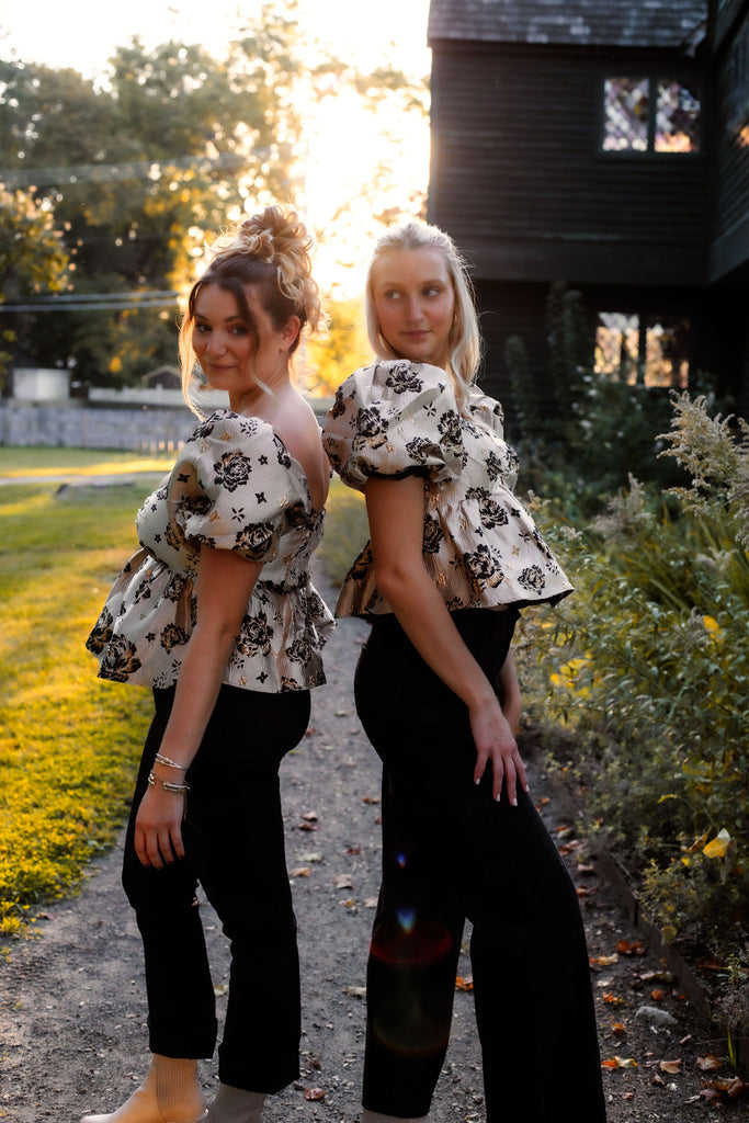 Runs FITTED! Brenna is 5'8 and wearing an XS. Hannah is 5'5 and wearing a size Medium.