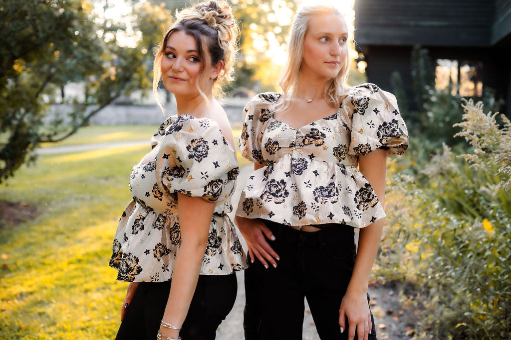 This beautiful top with metallic detail and floral design is a wardrobe standout! Going to a dinner party? A special event? Or even a date night? You're going to need this top! This gorgeous design is beautiful on and will have you feeling like the total queen that you are!