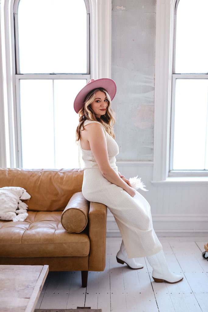 This gorgeous knit tank is the perfect top for transitioning into spring. Going away anytime soon? Pack the Gemma Knit Tank in your suitcase for a cute going out top or something to throw on during the day that will keep you cool! Pair with matching Gemma Knit Midi Skirt to complete the look!