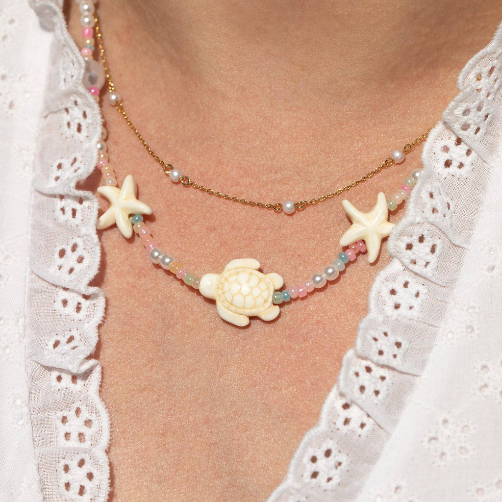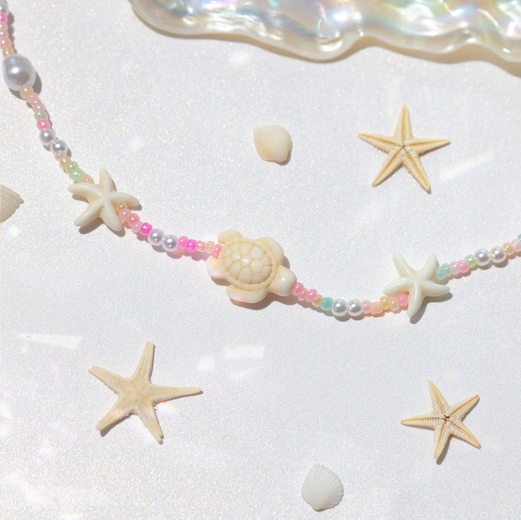 Consider this your official invite to the cutest beach party... on your neck. The Turtle Bay Beaded Necklace features pastel beads with starfish and turtle accents. It's basically a beach day you can wear.