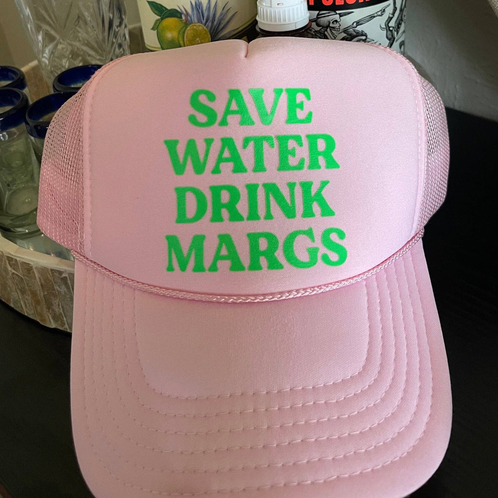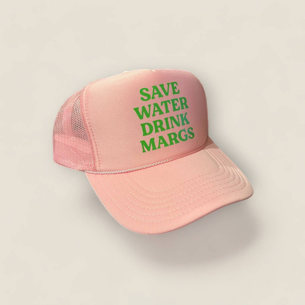 Raise your glass and sip back in style with this Drink Margs Trucker Hat! Perfect for your lake days, girls night out, or margarita-filled vacation, this light pink hat will take your wardrobe to fun and flavorful new heights! 🌮 Light pink trucker hat with light green matte ink. We love this hat paired with all of your summer fits!