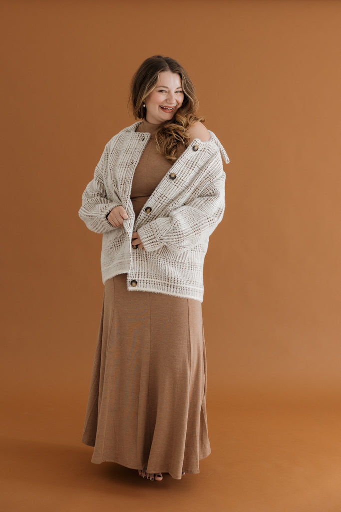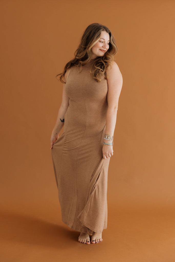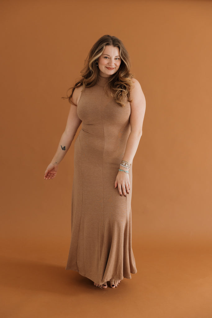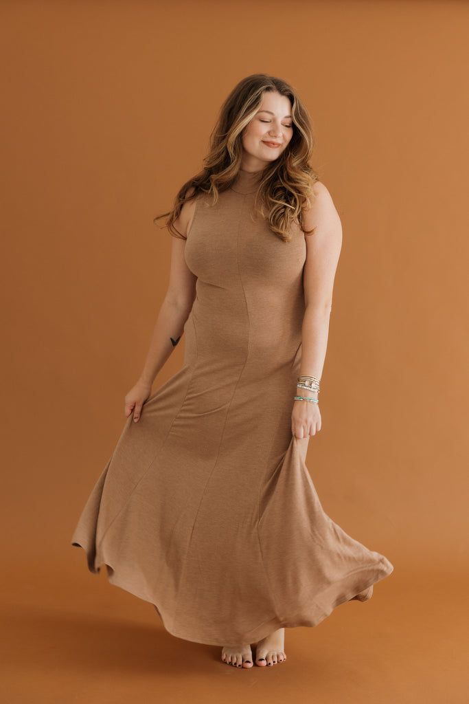 The Haylie Dress is your new go-to for fall fun. This sleeveless, high-neck mock dress in a neutral shade pairs perfectly with boots for a chic, effortless vibe. Whether you layer it up with cozy sweaters or keep it simple on warmer days, it’s designed to keep your look playful and versatile all season long.