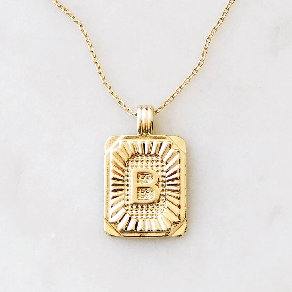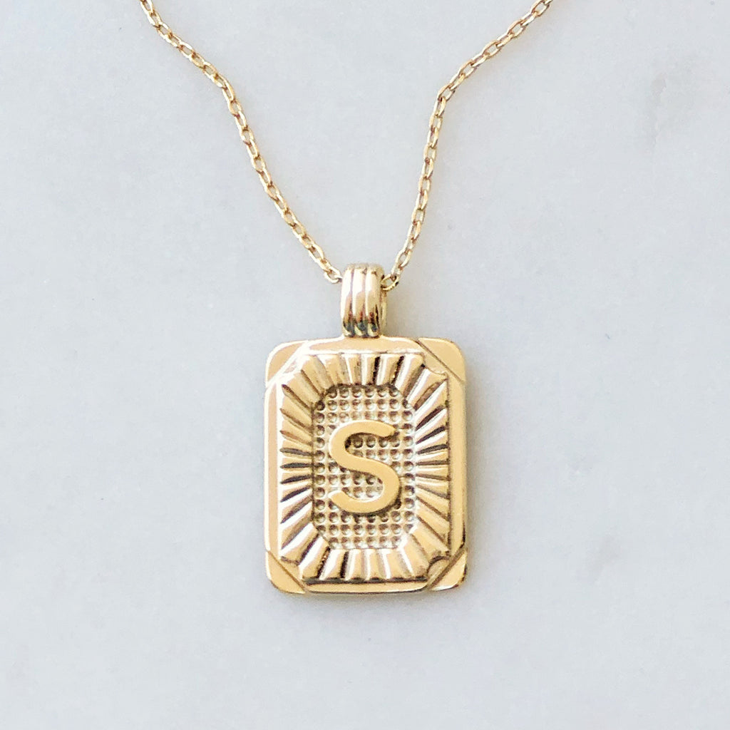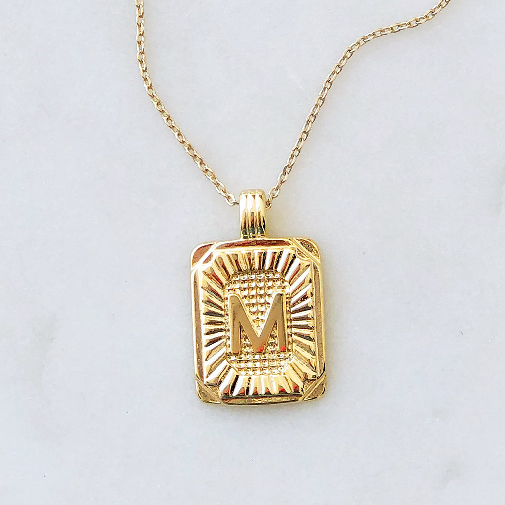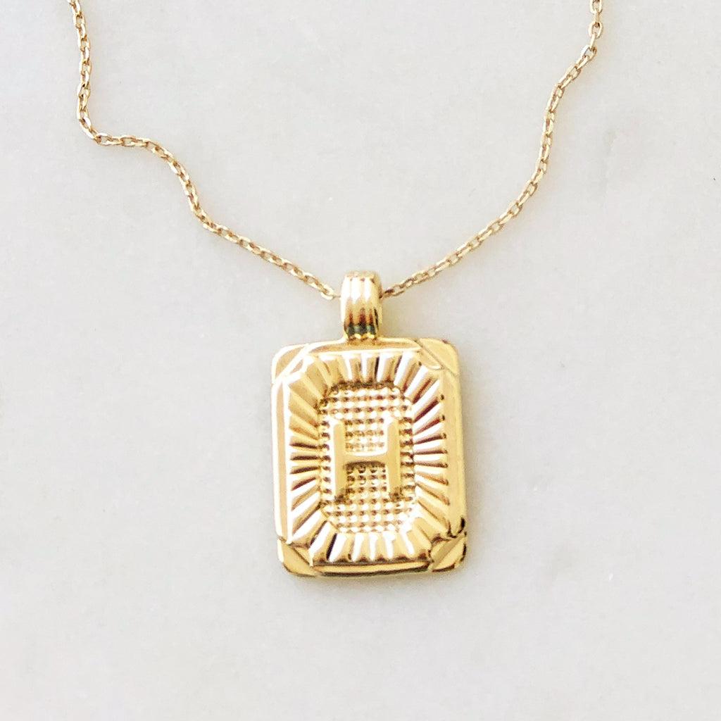 My Name Is... HANNAH! Initial necklaces have been all the rave lately especially this trendy square gold plated style. Layer with your pre owned necklaces or wear bodly by itself. This necklace will have you BEAMING with confidence.