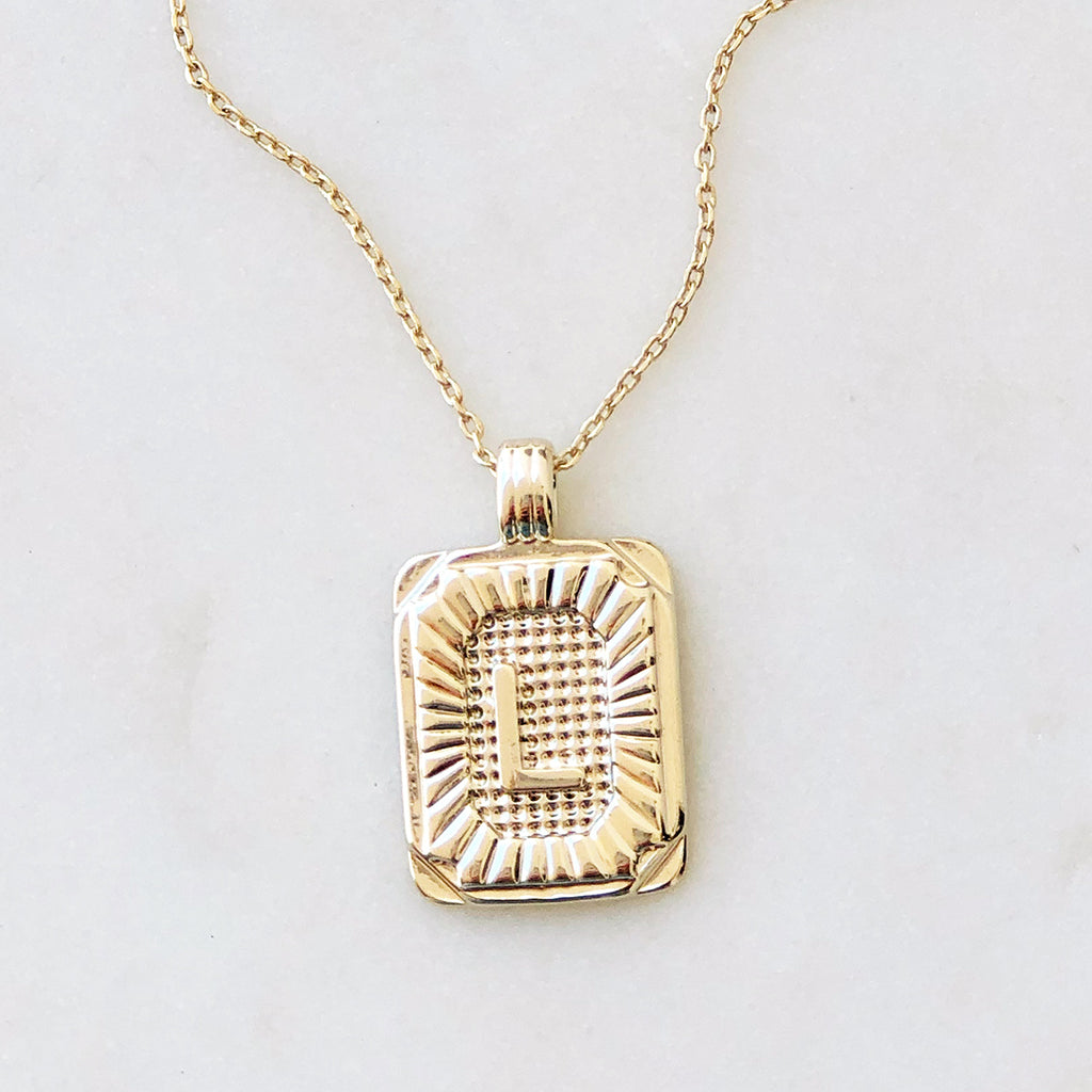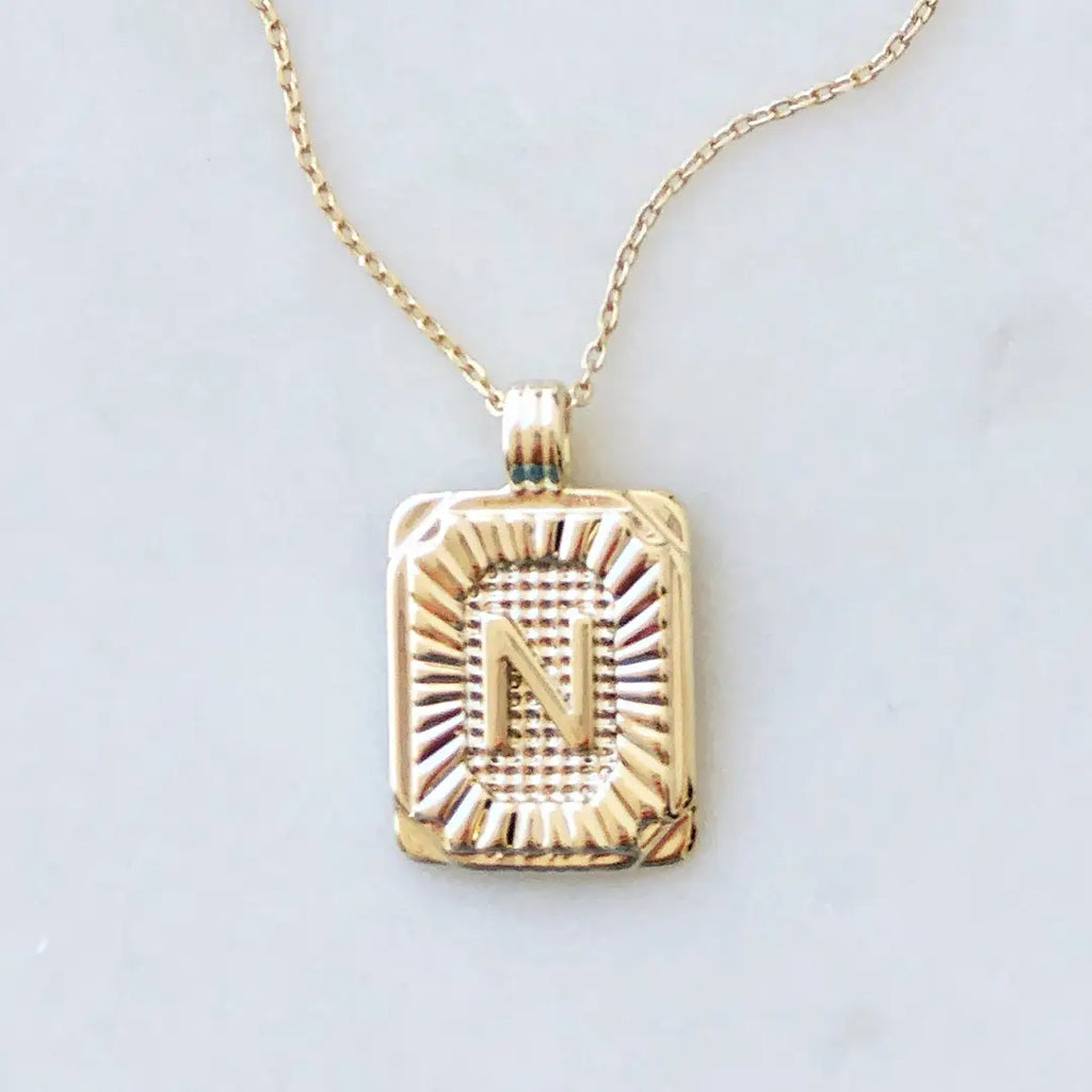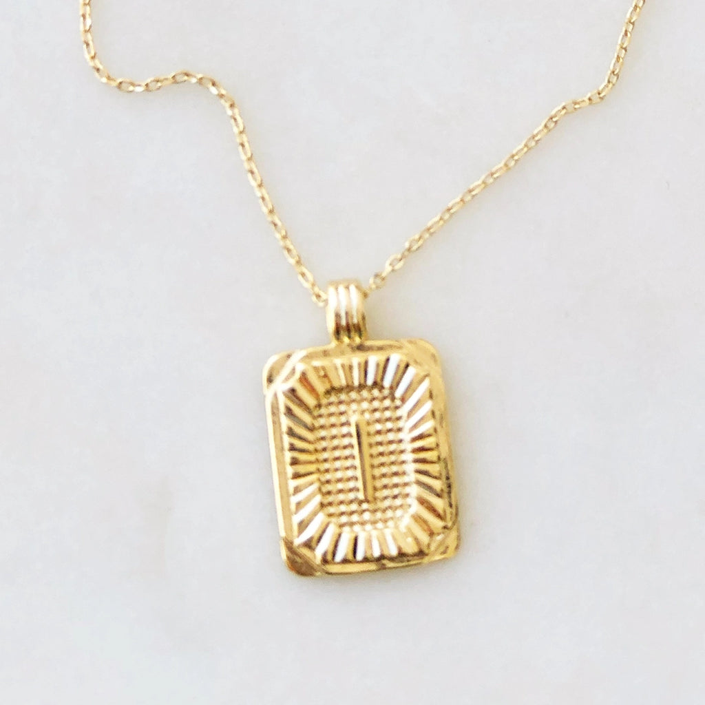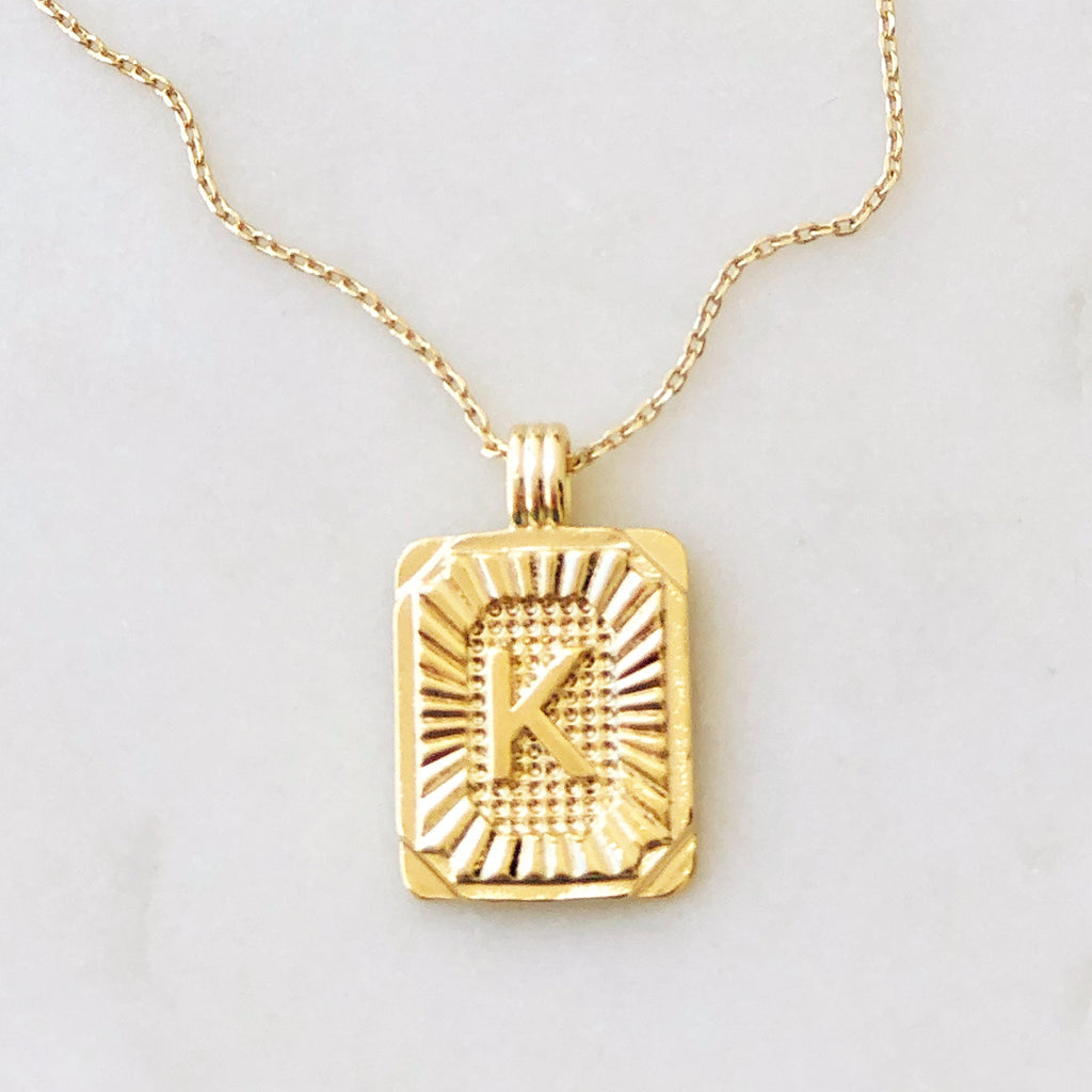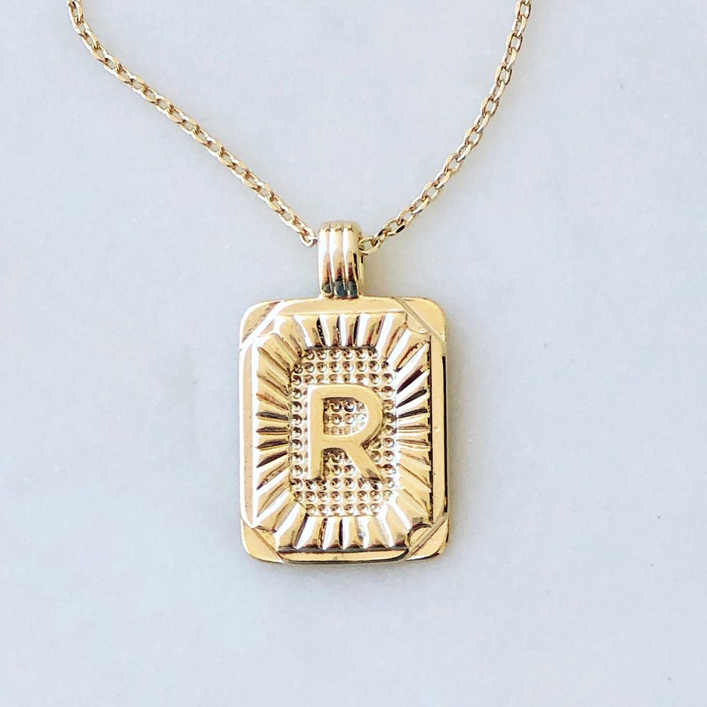 My Name Is... HANNAH! Initial necklaces have been all the rave lately especially this trendy square gold plated style. Layer with your pre owned necklaces or wear bodly by itself. This necklace will have you BEAMING with confidence.