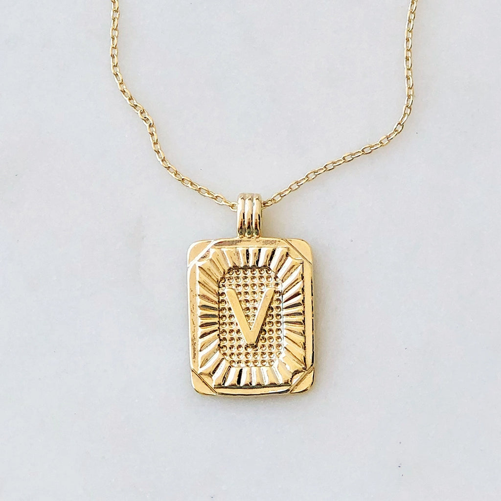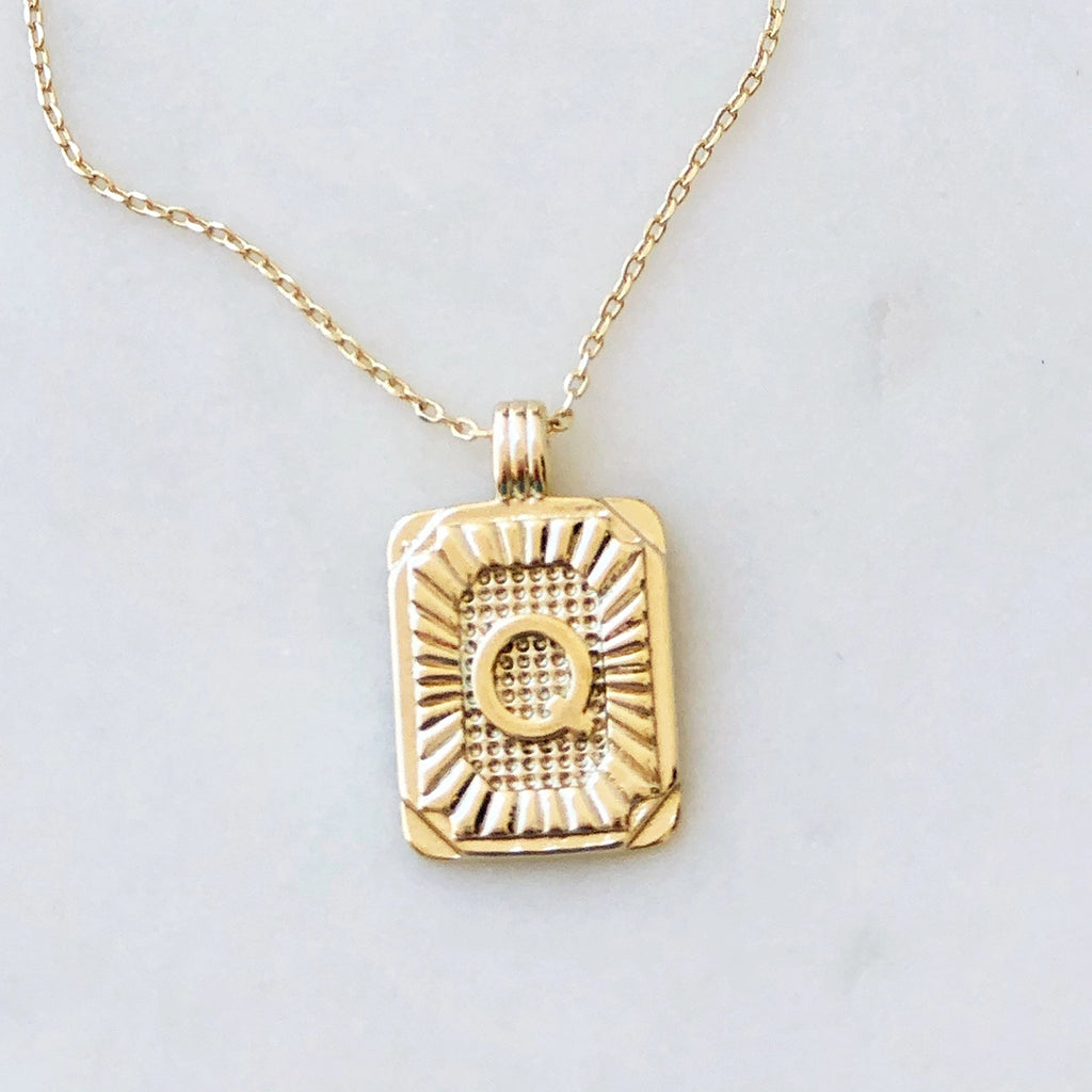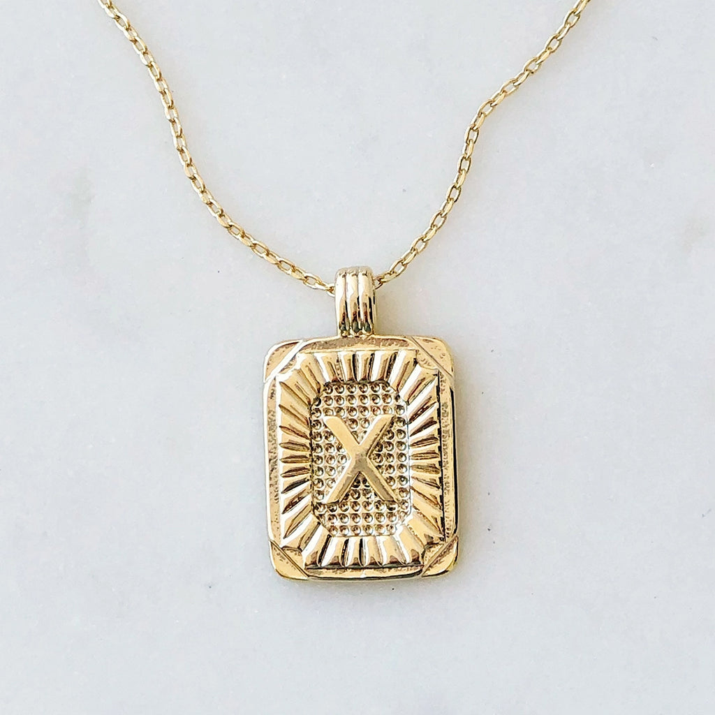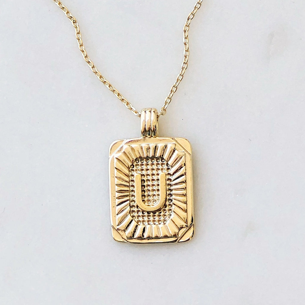 My Name Is... HANNAH! Initial necklaces have been all the rave lately especially this trendy square gold plated style. Layer with your pre owned necklaces or wear bodly by itself. This necklace will have you BEAMING with confidence.