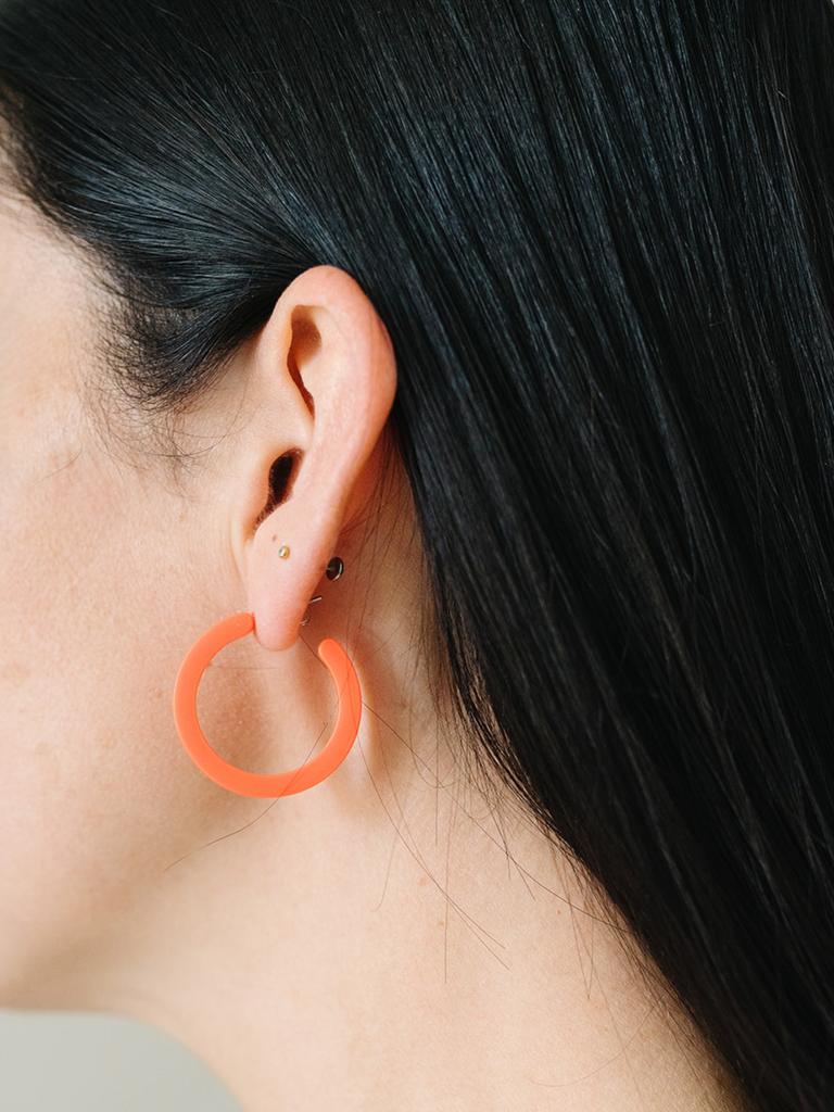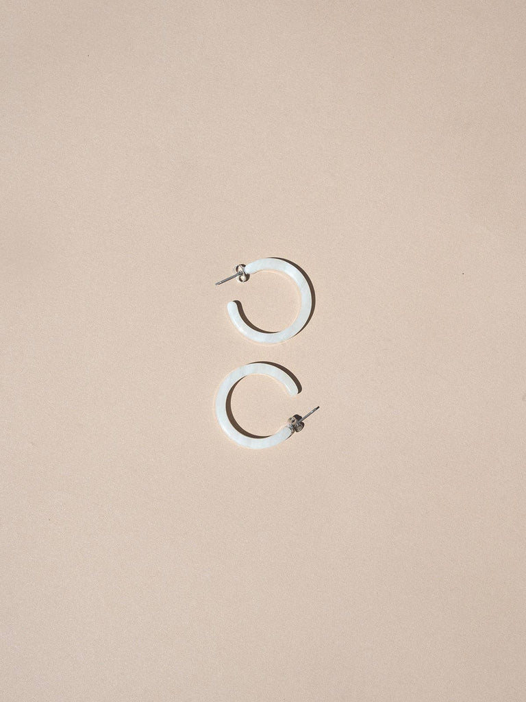 Introducing NAT + NOOR's classic and sustainable hoop earrings. Crafted from hypoallergenic materials like stainless steel and cellulose acetate, these durable hoops will add a stylish touch to any outfit. The off-white shell color makes them a versatile and prominent staple in your collection. Diameter: 1.2".