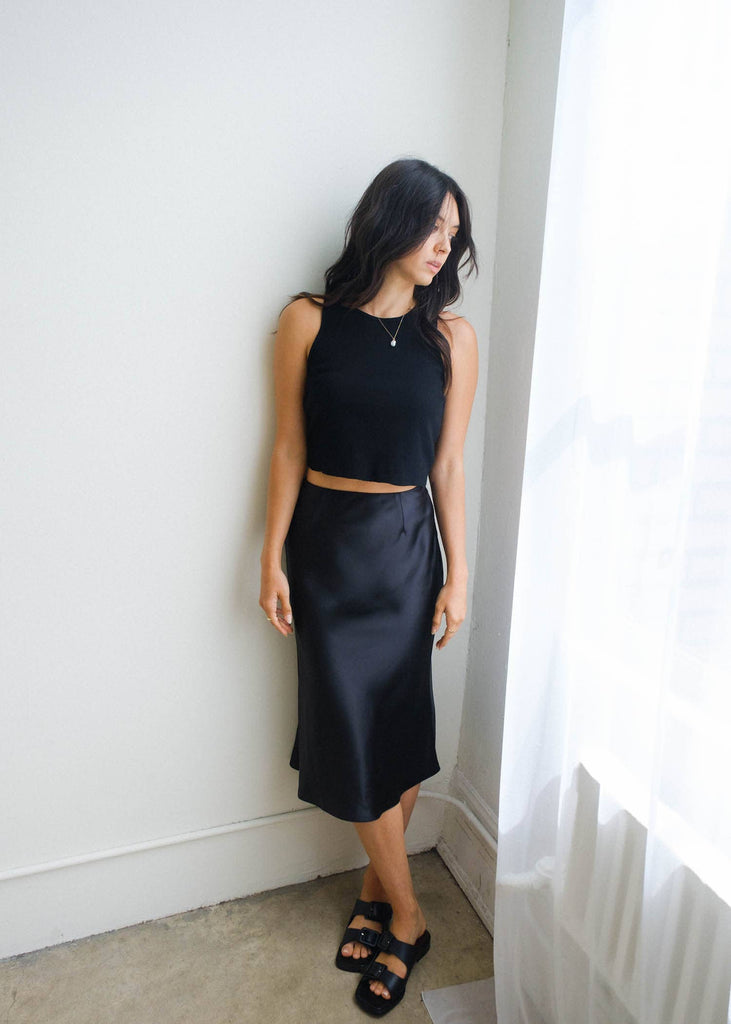Zip up some style with our simple satin skirt! Made with a bias cut and side zipper closure, this skirt is effortlessly chic and easy to wear. (No need to struggle with a complicated outfit, am I right?)