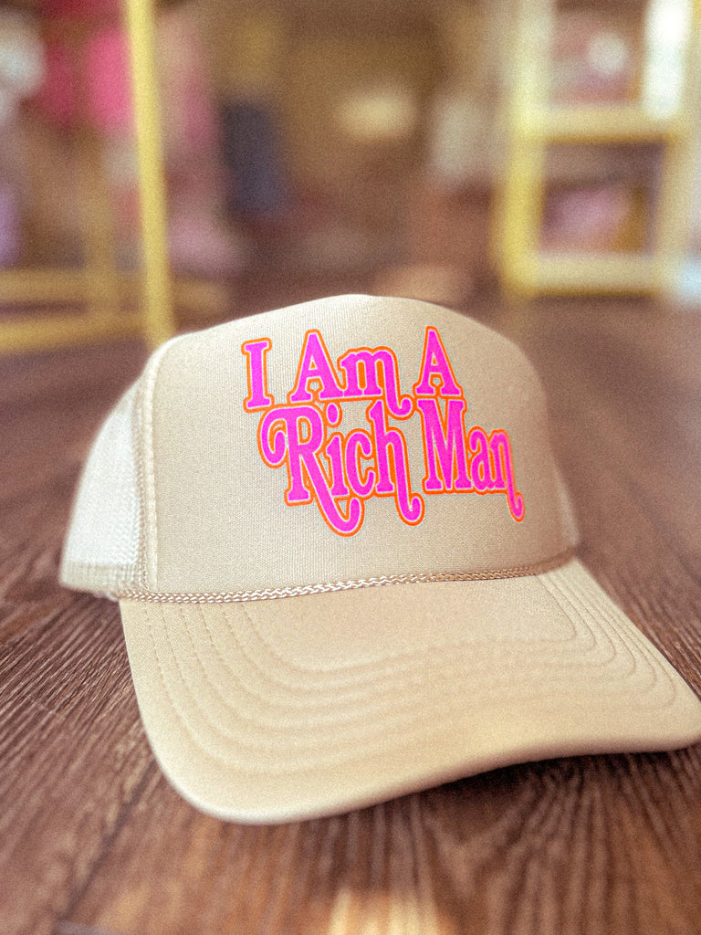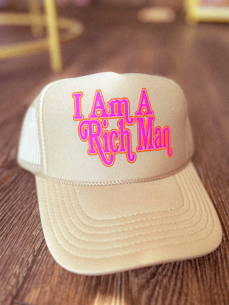 Stay stylish all summer with this fun and fashionable "Mom, I Am A Rich Man" Trucker Hat. Crafted with exceptional quality, this eye-catching hat has just the right amount of flair that will help you stand out from the crowd. With its comfortable fit, you'll look cool no matter where the day takes you.